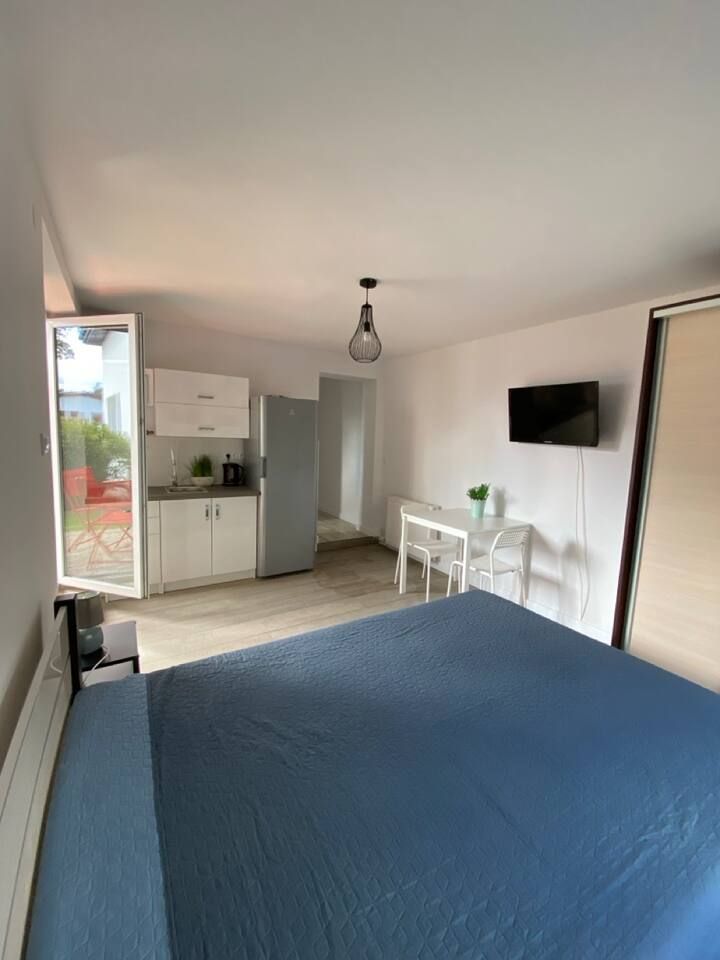 Goście są mile widziani do swobodnego korzystania ze wspólnego ogrodu – idealne miejsce na relaks na świeżym powietrzu 🌳☀️. Każde studio ma jedno wyznaczone miejsce parkingowe 🚗🅿️.