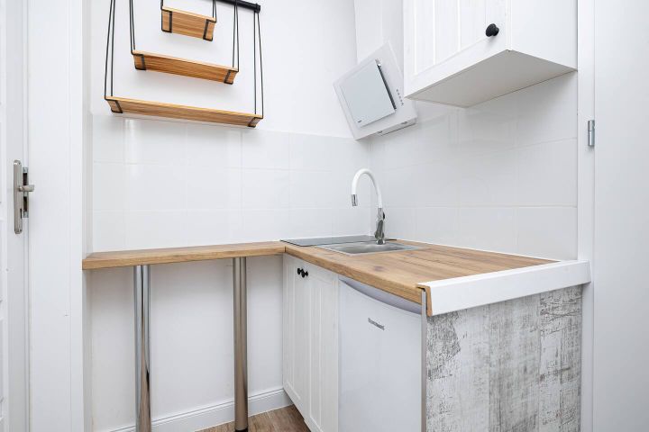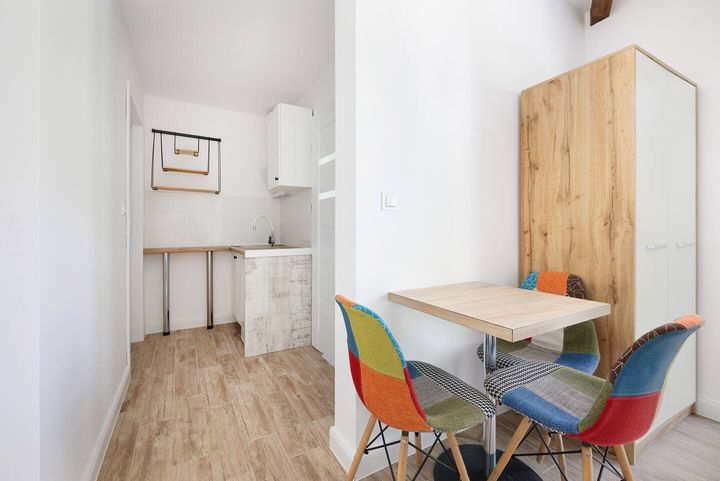 • Mały aneks kuchenny z stołem i krzesłami 🍽️